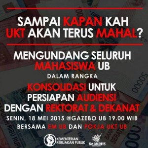 Malang – Kav.10 Menjelang penerimaan mahasiswa baru Universitas Brawijaya tahun 2015, wacana tentang Uang Kuliah Tunggal (UKT) kembali mengemuka. Eksekutif...