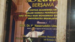 Nassaruddin Umar saat menyampaikan khotbahnya di hadapaan jamaah. MALANG.KAV-10 Pusat Pembimbingan Agama (PPA) Universitas Brawijaya mengadakan kegiatan peringatan Isra’ Mi’raj...
