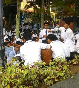 Kontingen MIPA di tribun timur keluar dari GOR Pertamina (Foto oleh Khoyrudin/Kavling10) MALANG-KAV.10 Delegasi Fakultas Matematika dan Ilmu Pengetahuan Alam...