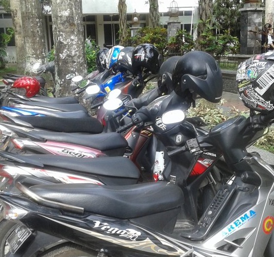 Beberapa sepeda motor bertengger di lahan parkir FIB