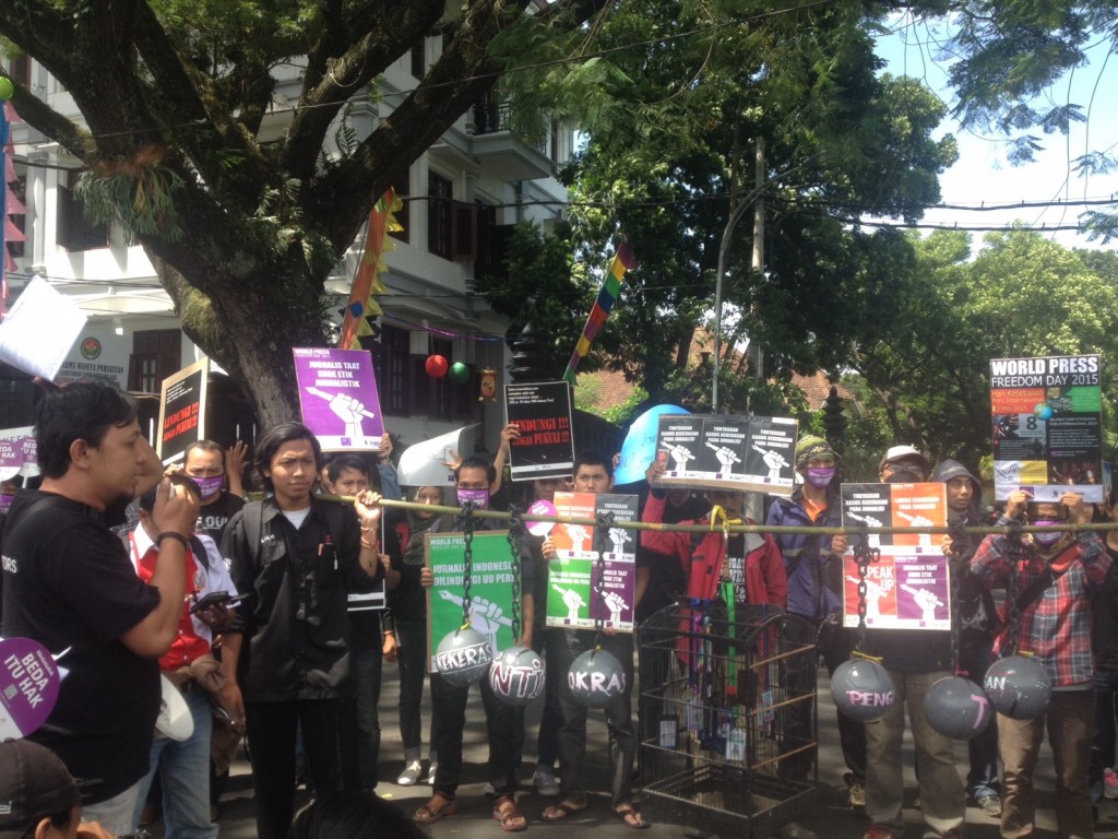 Massa kemudian menyampaikan beberapa tuntutan yang dikawal oleh TNI, Polri, dan Satpol PP. Tuntutan tersebut diantaranya 1) tuntaskan kasus pembunuhan jurnalis dan tolak praktik impunitas; 2) menolak kekerasan dan intimidasi terhadap jurnalis; 3) menuntut badan publik untuk lebih terbuka dalam memberikan informasi pada jurnalis; 4) menolak pembatasan berekspresi terutama di perguruan tinggi.