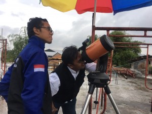 Keterangan: Percobaan pengamatan oleh anggota Astrononomy Physics Club (APC) di atap Ma'had SMA Islam Sabilillah Malang (26/5). Foto: Izhar MALANG-KAV.10...