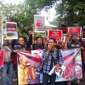 MALANG-KAV.10 Aksi peringatan Hari Kebebasan Internasional (World Press Freedom Day) di depan Kantor Wali Kota Malang kedatangan Sutiaji, Wakil Walikota...
