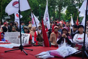 MALANG-KAV.10 Peringatan Hari Buruh Internasional atau May Day yang digelar di Alun-Alun Kota Malang hari ini (1/5) turut menghadirkan Iksan...
