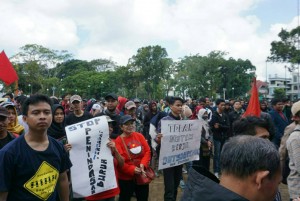 MALANG-KAV.10 Kalangan buruh, mahasiswa, dan kelompok masyarakat menyatakan solidaritasnya dalam aksi peringatan Hari Buruh Internasional atau May Day di Alun-Alun...