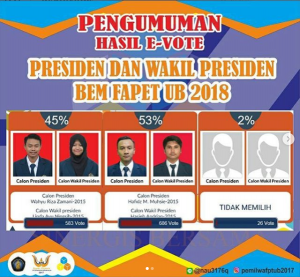 Pengumuman hasil Pemilwa Fapet 2017 dalam laman Instagram @.pemilwafapet. MALANG-KAV.10 Puncak pesta demokrasi Fakultas Peternakan (Fapet) digelar hari ini (26/11)....