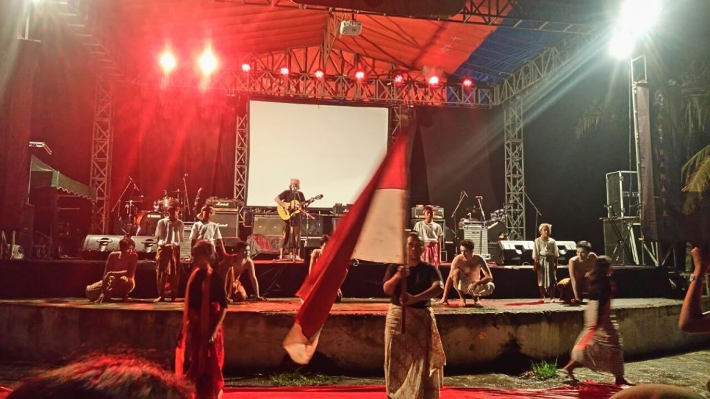 Teater yang berdurasi kurang lebih lima belas menit ini diperankan oleh 16 pemain dari berbagai elemen masyarakat mulai dari anak sekolah dasar hingga pengamen. Pertunjukan berakhir dengan membentangkan kain merah putih yang melambangakan bendera Indonesia. Penonton menyanyikan lagu Padamu Negeri diikuti nyala lampu handphone(lia/atw)