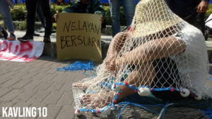 TERKUNGKUNG - Selain menggelar orasi, dalam aksi memperingati Hari Nelayan, mahasiswa FPIK juga menggelar aksi teatrikal di Bundaran UB Senin kemarin...