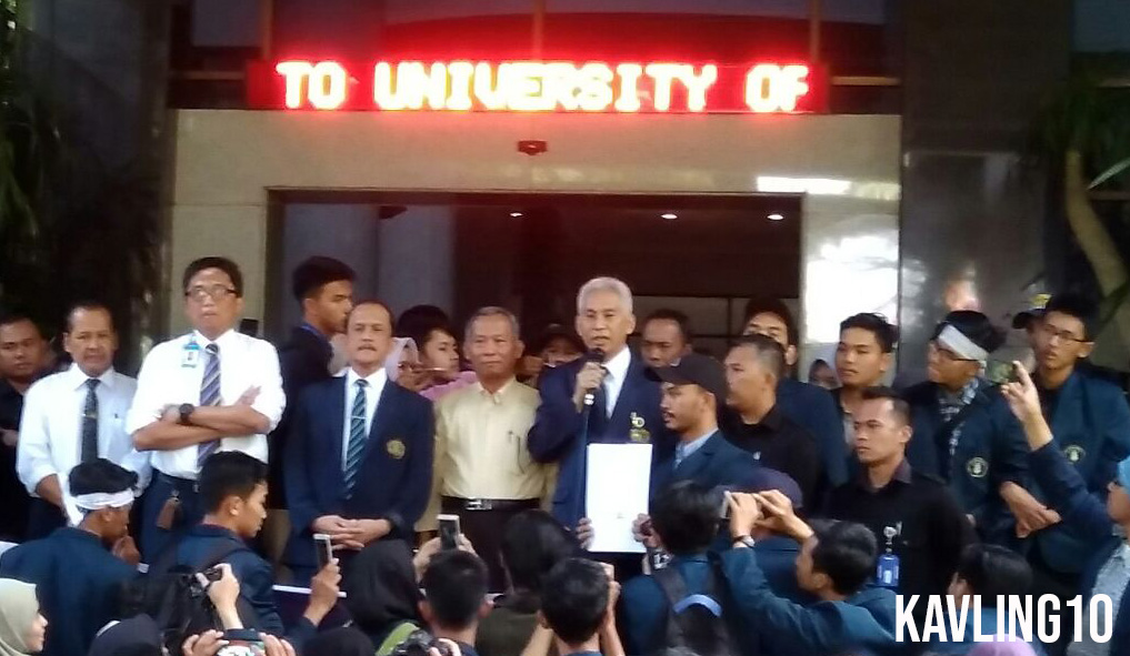 Rektor UB 2014-2018 M. Bisri ketika menemui massa aksi 2 Mei 2018 lalu. Foto: Oky