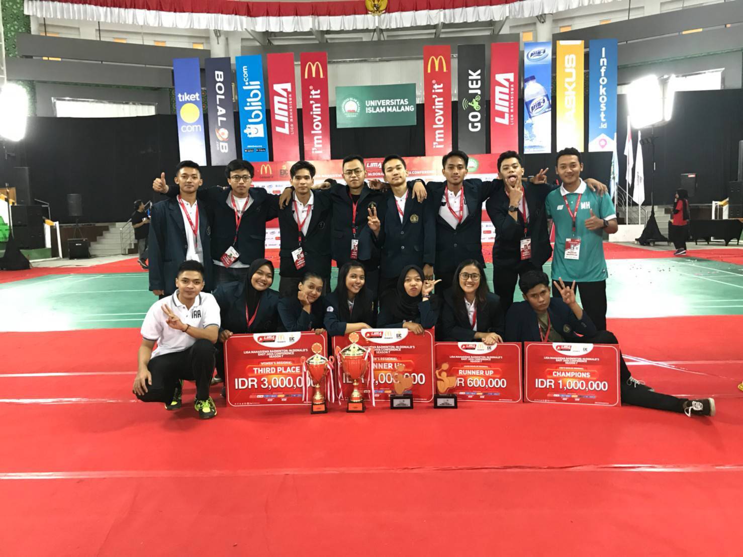 MALANG-KAV.10 Tim bulu tangkis Universitas Brawijaya berhasil memperoleh prestasi pada Liga Mahasiswa (LIMA) Badminton regional Jawa Timur 2019. UB berhasil menang di kategori perorangan putra, sedangkan tim beregu putra menyabet posisi kedua pada final yang berlangsung Kamis (14/03) di Gedung Bundar Al Asy’ari Unisma, Malang. Meski sudah meraih prestasi, bonus yang diberikan rektorat baru cair pada akhir tahun.