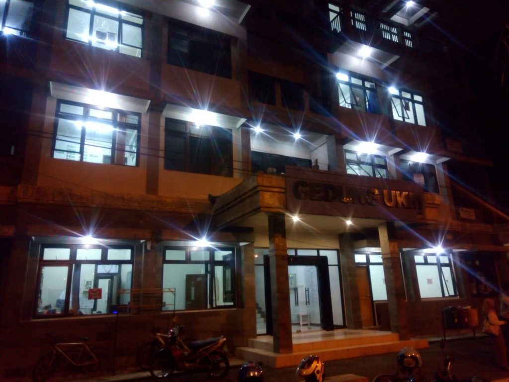 Potret gedung UKM di malam hari. Foto: Rinto