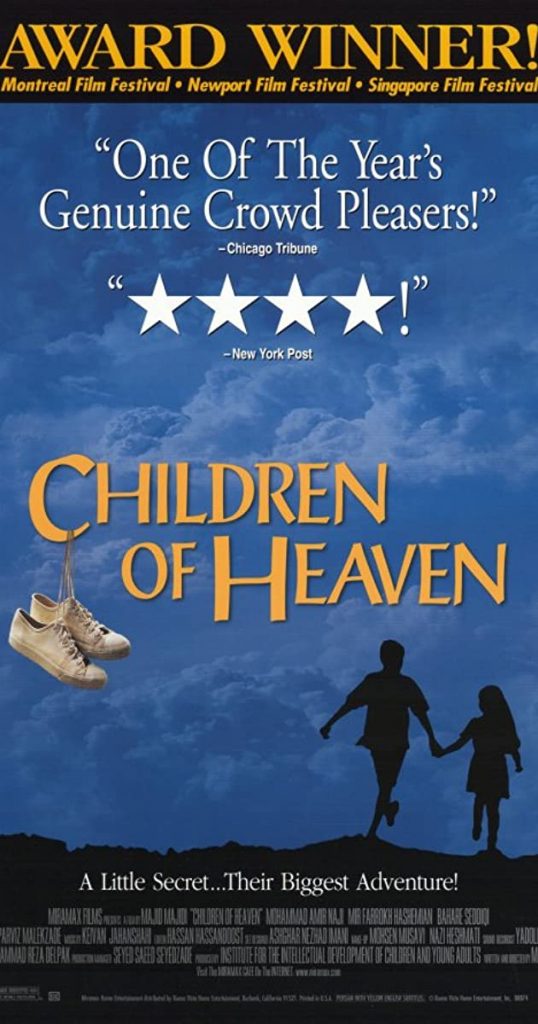 Begitulah singkat alur cerita film yang berjudul The Children Of Heaven yang digarap pada tahun 1997 yang mengambil latar belakang di kawasan pinggir kota di negara Iran. Kekuatan film ini berada pada sisi emosional karakter. Keduanya sangat mudah menitikkan air mata yang memancing simpati para penonton. Jalan cerita juga dikemas dengan apik serta membuat penonton tersentuh dengan dua kakak-beradik tersebut. Film ini juga berhasil membawa penonton ikut tegang dan resah ketika mendapati Zahra harus berlari untuk menemui Ali selepas sekolah hanya untuk sepasang sepatu. Pembangunan interaksi dan penjiwaan karakter dari dua aktor cilik tersebut patut diapresiasi karena memang terlihat sangat natural selayaknya kakak memarahi adiknya dan adik yang merajuk pada kakaknya.