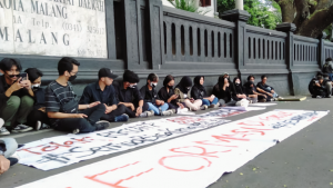 Situasi Aksi Teatrikal Amarah Brawijaya, Rabu (6/7) di Depan DPRD Kota Malang. Sumber: Sifin Astaria MALANG-KAV.10 Aliansi Mahasiswa Resah (Amarah)...