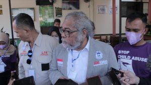 Arist Merdeka Sirait saat menghadiri sidang lanjutan kasus kekerasan seksual JEP (20/07). Sumber: Moch. Fajar Izzul Haq MALANG-KAV.10 Puluhan massa...