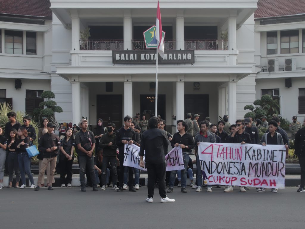 MALANG-KAV10 Empat tahun sudah Joko Widodo menjalankan pemerintahan. Bila dihitung dari 2014, maka tahun ini adalah tahun kesembilan. Satu tahun sebelum berakhirnya masa pemerintahannya, Jokowi menyisakan catatan merah. Beberapa catatan itu disampaikan dalam dua poin pernyataan dan sebelas tuntutan Aliansi Suara Rakyat (ASURO), di depan Balai Kota Malang, Selasa (31/10).