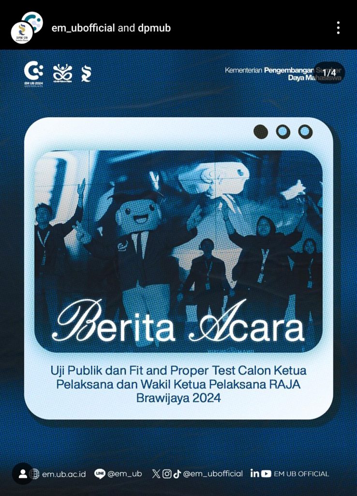 MALANG-KAV.10 Polemik timbul dalam proses seleksi ketua dan wakil ketua pelaksana Raja Brawijaya 2024. Hal ini sehubungan dengan berita acara yang dikeluarkan oleh DPM UB pada Sabtu (11/5)  lalu. Dalam berita acara tersebut, ditemukan bahwa tidak terdapat tanda tangan ketua panitia penyeleksi sehingga menimbulkan adanya dugaan kecacatan pada hasil Fit and Proper (FnP) Test yang dilakukan.