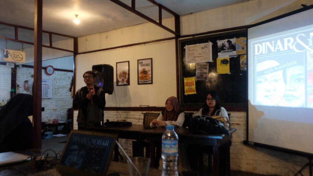 MALANG-KAV 10 Bertepatan di bulan September yang lekat dengan segudang tragedi pelanggaran Hak Asasi Manusia (HAM) berat yang tak kunjung menemui titik terang, Lembaga Pers Mahasiswa (LPM) Siar dan Perhimpunan Pers Mahasiswa Indonesia (PPMI) Kota Malang bersama Area Baca Selasa dan Aksi Kamisan Malang mengadakan Diskusi Nusantara (Dinar) bertajuk “Membebaskan Ingatan Publik: Hilangnya Satu Generasi Intelektual Indonesia”. Dalam diskusi yang digelar di Kedai Rupa Duta pada Sabtu (14/9) ini, diputar pula sebuah film dokumenter berjudul “Api Kartini”.