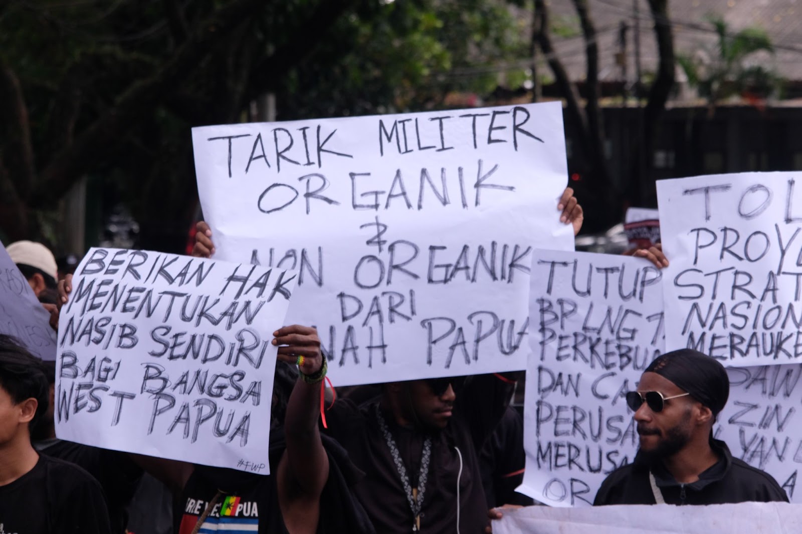 Cici dan Abdul Ghani–pemuda berbandana merah–ialah beberapa dari anggota PEMBEBASAN Kolektif Malang. Mereka membumbungkan kenyataan bahwa Indonesia Timur sedang tidak baik-baik saja. Dengan demikian, Cici dan Ghani mengajak bersama-sama untuk menggalang solidaritas kepada masyarakat Indonesia Timur. Dalam aksi itu, Ghani kecewa terhadap pemerintah yang melakukan perampasan tanah adat dan hutan adat tanpa pelibatan masyarakat setempat. “Jadi investasi-investasi asing yang masuk secara ilegal ini bertentangan dengan aktivitas daripada masyarakat-masyarakat adat yang ada di Indonesia Timur,” jelas Ghani.