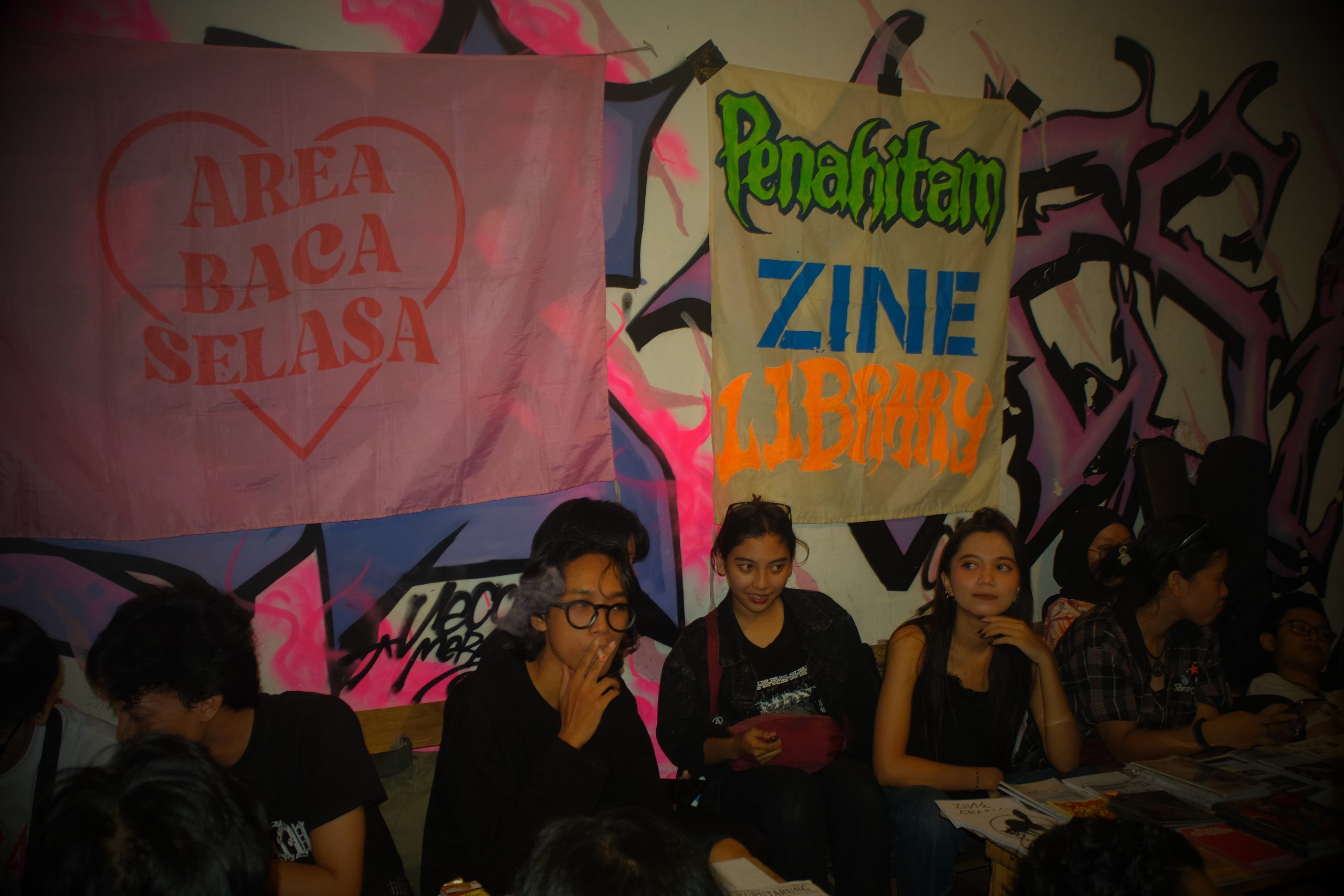 Di salah satu sisi ruangan, lapak dari Area Baca Selasa dan Penahitam dikelilingi dengan anak muda yang menyusuri jajaran zine yang siap untuk dibaca. Area Baca Selasa sebagai media partner alternatif ingin orang-orang mengetahui bahwa ada komunitas yang aktif untuk membangun literasi dan turut menyuarakan isu-isu yang sedang terjadi.