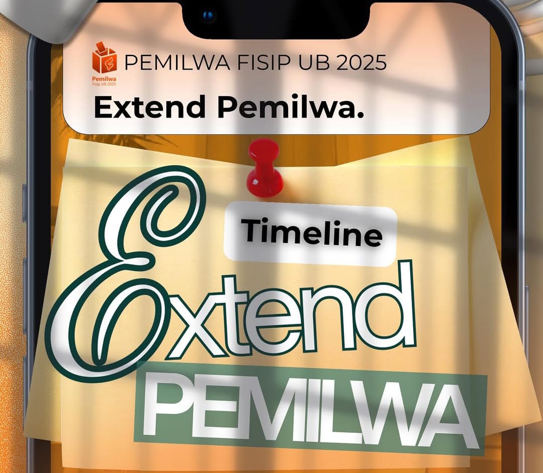 MALANG-KAV10 Panitia Pemilihan Mahasiswa (Pemilwa) FISIP UB telah membuka perpanjangan periode untuk pengambilan dan pengembalian berkas calon pasangan Presiden dan Wakil Presiden BEM FISIP UB 2025 pada Kamis (13/11) lalu. Hal ini disebabkan hanya terdapat satu calon pasangan Presiden dan Wakil Presiden BEM, sehingga perpanjangan periode diperlukan untuk memenuhi kuota. Namun, waktu perpanjangan yang seharusnya dibuka 2 kali 24 jam justru ditutup lebih cepat pada Jumat (14/11). Hal tersebut menimbulkan ketidaksesuaian waktu yang seharusnya digunakan untuk perpanjangan periode Pemilwa.