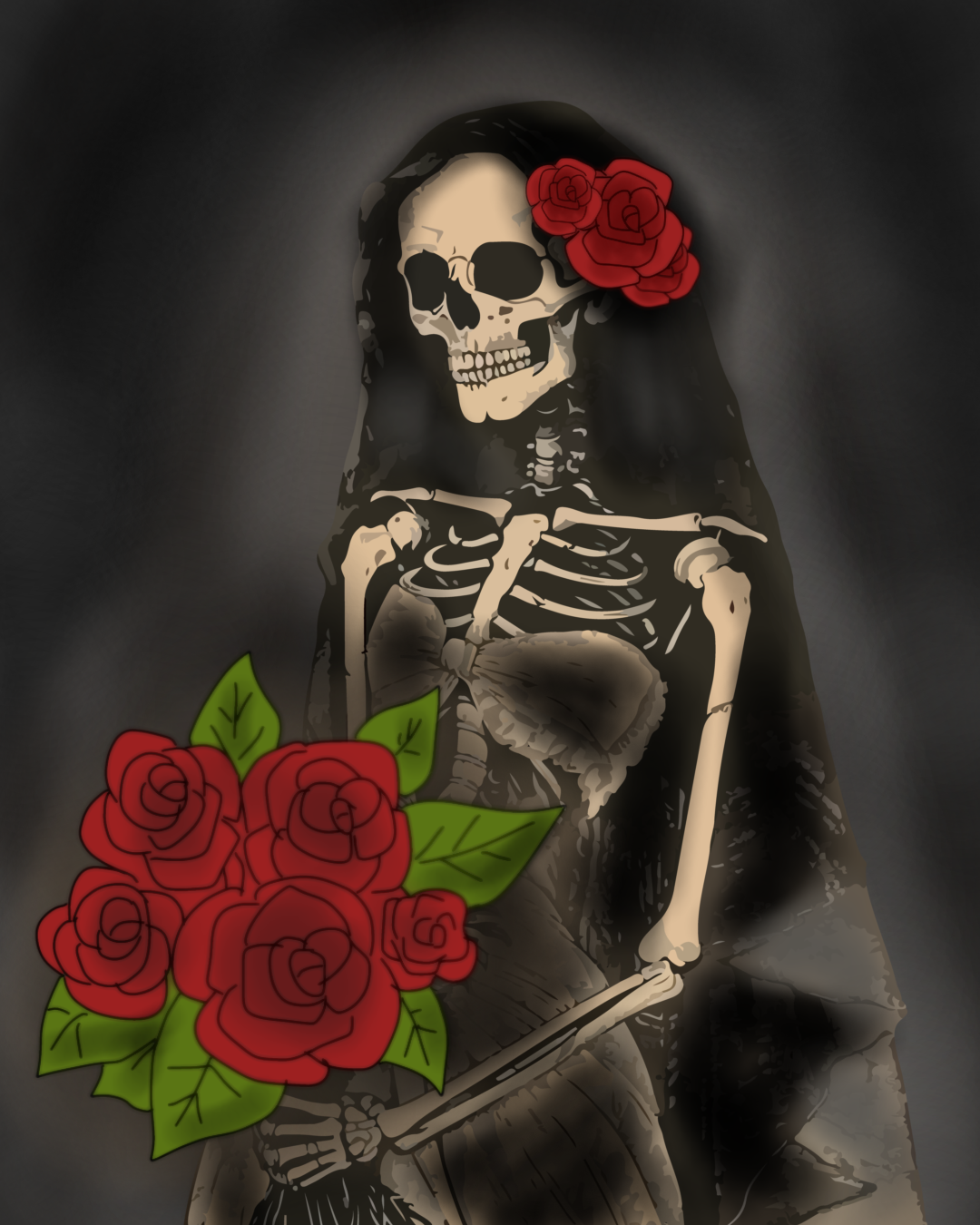Kemudian air matamu jatuh, ia luruh membasahi gaunmu, membuat corak-corak darah itu kembali basah dan mengeluarkan bau yang lebih kuat dari sebelumnya. Betapa rindunya aku melihat pemandangan itu, Utara. Sebab sebelum kedatanganmu yang menghuni tempat ini hanyalah tengkorak-tengkorak yang sudah tak berdaging dan tak punya mata untuk menangis. Aku pun sudah lupa kapan aku menangis, mungkin ketika aku pernah sekali mengenakan gaun yang mirip dengan pakaian yang kau kenakan saat ini. Berjalan di sebuah altar pernikahan dengan bunga yang harumnya menyakiti hidungku. Digenggam oleh sepasang tangan dari seorang laki-laki (aku sudah lupa rupanya, lupa pula ia siapa dan bagaimana aku bisa pernah menyayanginya)–yang pada saat itu aku tak tahu bahwa genggaman itu tak ubahnya dengan menyerahkan seluruh yang kumiliki, entah sebagai perempuan, atau pun sebagai manusia.