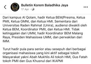 TAK HADIRI PERTEMUAN, KOORDINATOR BEM MALANG RAYA YANG DICATUT BULLETIN KOREM BERI TANGGAPAN