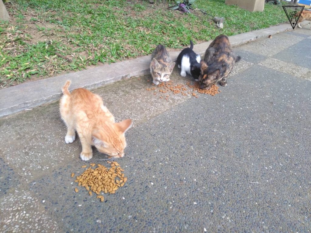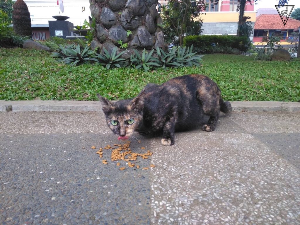 Saya yang baru pertama kali memberi makan kucing liar bingung harus bagaimana. “Gapapa mas, pakannya dituang aja di situ. Nanti kalau kita tinggalin dia makan kok,” lanjutnya.