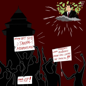Menuntut keringanan. Ilustrator: Isna Nurhaliza MALANG-KAV.10 Amarah (Aliansi Mahasiswa Resah) Brawijaya mengadakan konsolidasi tentang pemotongan uang kuliah tunggal (UKT) di...