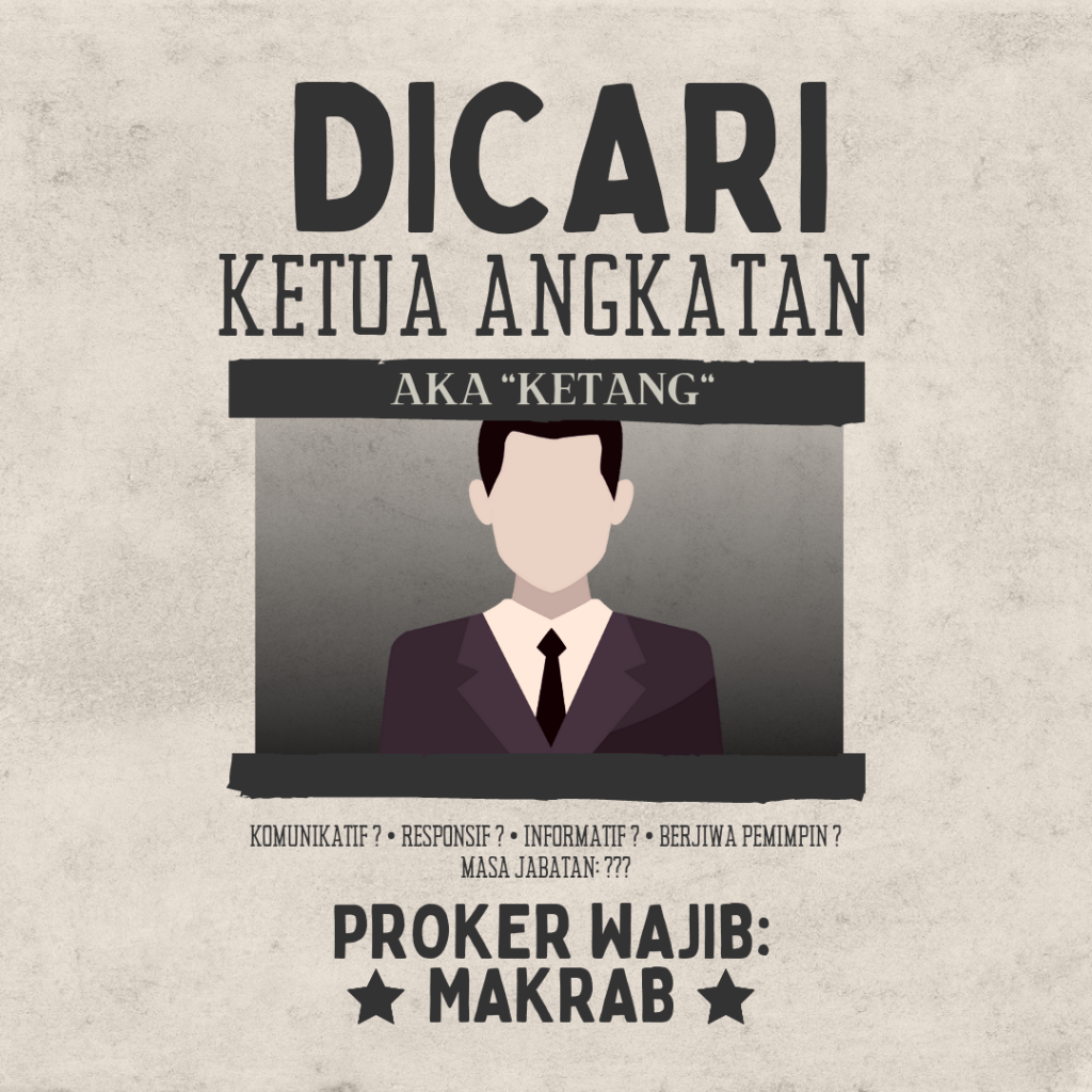 Menjadi seorang ketua angkatan (ketang) mungkin dapat menarik hati seorang recruiter saat wawancara kerja. Saya ingat betul, ayah saya yang merupakan seorang karyawan swasta mengatakan bahwa IPK bagus tidak ada apa-apanya jika tidak aktif berorganisasi atau gaul di angkatannya, minimal jadi ketua angkatan. Menjadi seorang pemimpin tentu bukanlah hal yang mudah. Namun, apakah seorang ketang adalah idealnya seorang pemimpin? Dalam praktiknya, dari pemilihan hingga pelaksanaan, baik buruknya ketang menjadi buah bibir mahasiswa tiap prodi. Ketang dipilih teman-temannya karena dipercaya bisa memimpin. Tetapi, bagaimana kenyataannya?