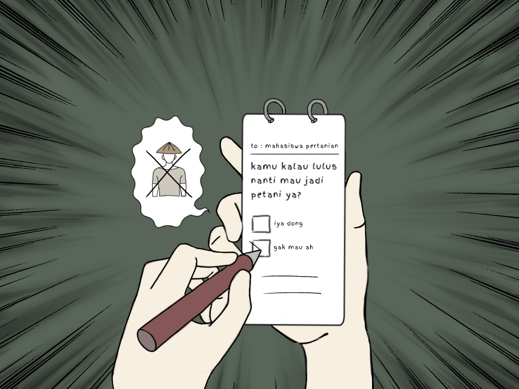 Sebagai mahasiswa pertanian semester tua, saya sering mendapatkan pertanyaan-pertanyaan nyeleneh dari orang sekitar. Mulai dari teman tongkrongan yang selalu bertanya jenis tanaman yang dia lihat, sampai tingkat kesuburan tanah kuburan. Di antara pertanyaan-pertanyaan tersebut, ada satu pertanyaan yang paling sering ditanyakan dan sepertinya teman-teman FP yang lain juga mengalami. Pertanyaan itu adalah: “Kamu kalau lulus nanti mau jadi petani?”.