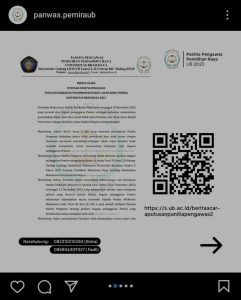 MALANG-KAV.10 19 November 2023, akun Instagram Panitia Pengawas (Panwas) Pemilihan Mahasiswa Raya (Pemira) Universitas Brawijaya (UB) dengan nama @panwas.pemiraub merilis...