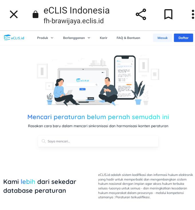 MALANG-KAV.10 Fakultas Hukum (FH) Universitas Brawijaya memfasilitasi seluruh civitas akademika FH sebuah platform bernama eCLIS yang dapat diakses secara gratis. Sayangnya, platform yang telah digaungkan sejak 2021 ini belum digunakan secara masif karena sosialisasi yang masih minim.